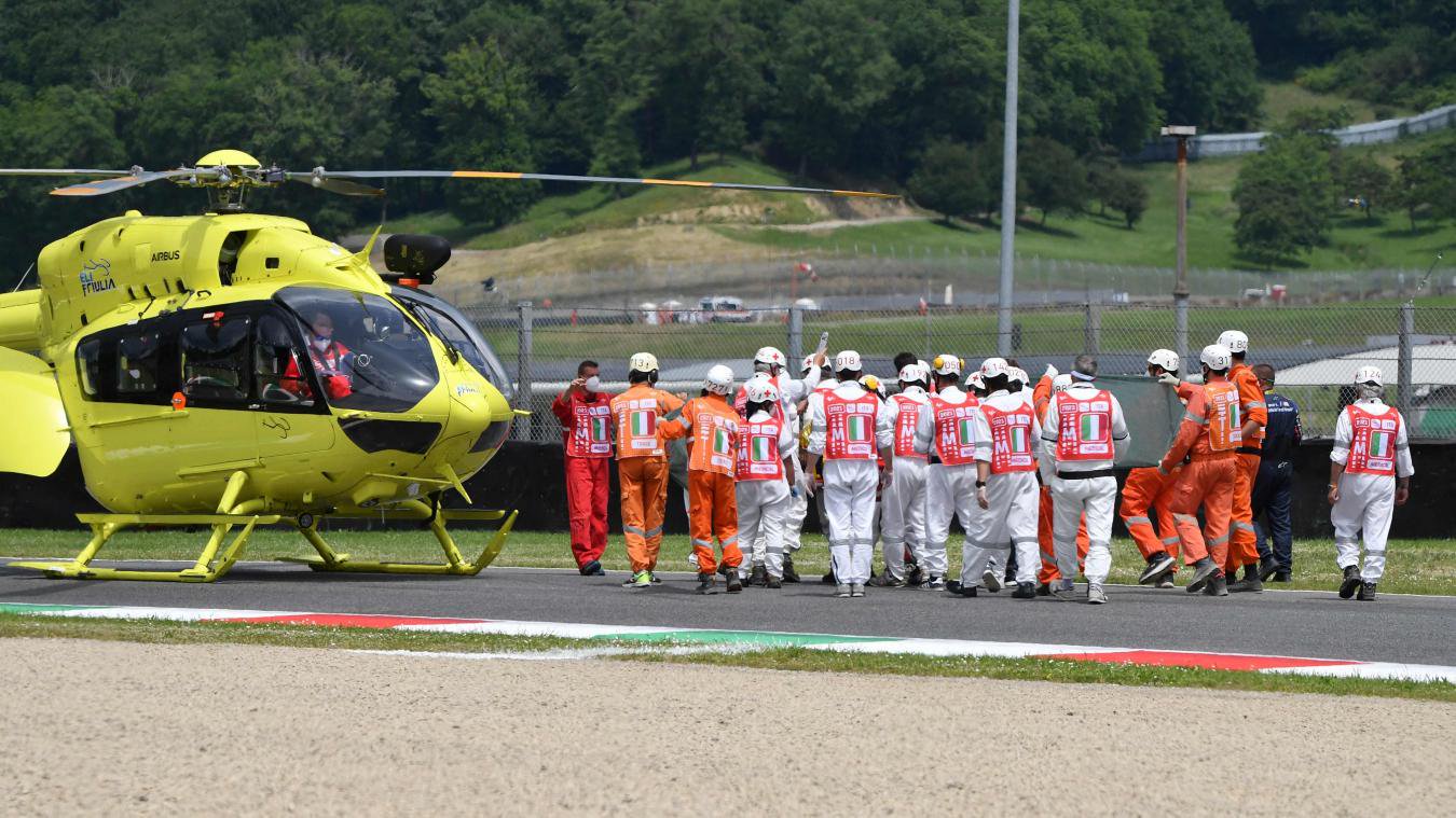 Swiss rider jason dupasquier was airlifted to a hospital after a crash during moto3 qualifying for the italian grand prix at mugello on saturday.